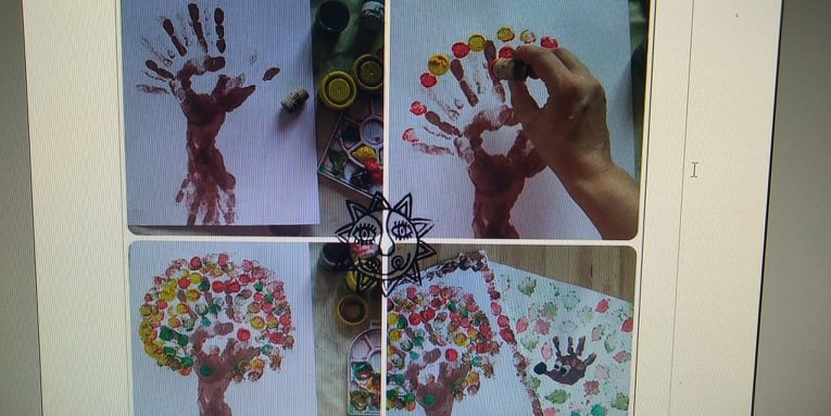 Tvoření (nejen) s dětmi - Podzimní strom - otisky rukou a korkovým špuntem